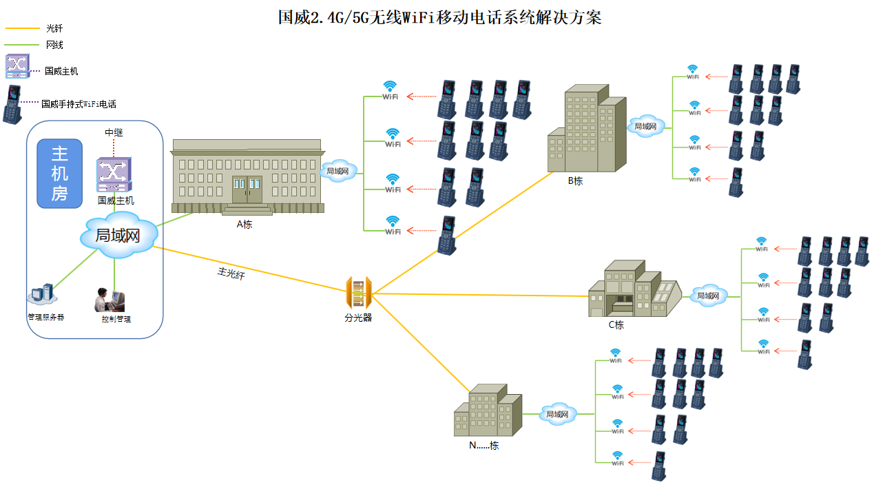 國威GW36是一款可桌面、可腰帶夾掛的便攜式無線WiFi電話機, 支持無線WiFi為語音傳輸鏈路通道實現企業電話系統的語音通信。 不但具備非常便利的易安裝、易部署、大容量1900mAH可充電鋰 電池,可通話約9小時,待機時間約200小時、可移動辦公通話、 多種來電鈴聲、來電震動、防跌落高度1.8米等特點,可以通過 Web頁面對每一個無線WiFi電話機進行統一集中管理,國威GW36 型無線 WiFi電話廣泛應用在政府、軍隊、公安、監獄、金融、 校園、辦公、醫院、酒店、高速、鐵路、電力、部隊、煤礦、化 工、冶金、商場等企業移動辦公電話系統通信。