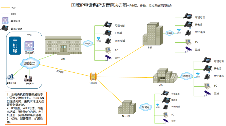 國威IP電話系統(tǒng)解決方案拓撲圖