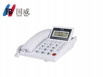 國威GW37型來電顯示電話機,白色辦公座機,屏幕角度可翻轉電話機