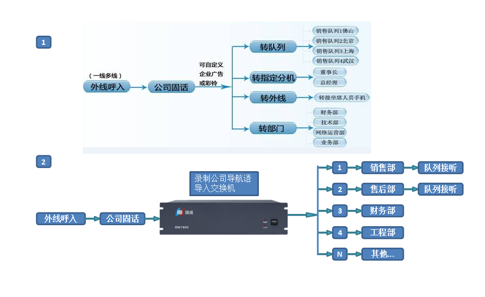 第一種:IVR導航企業歡迎詞電腦導入國威程控交換機系統方法介紹: