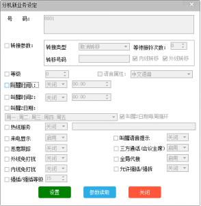 (4) 支持分機業務設定、查詢。操作方式:右鍵選中的用戶方塊,選擇查看分機業務。